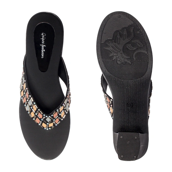Black short heel semi casual slippers for women