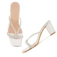 Fancy party wear block heel diamond slippers