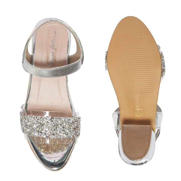 Silver Heel Chain work Kids sandals- 8 Pair set